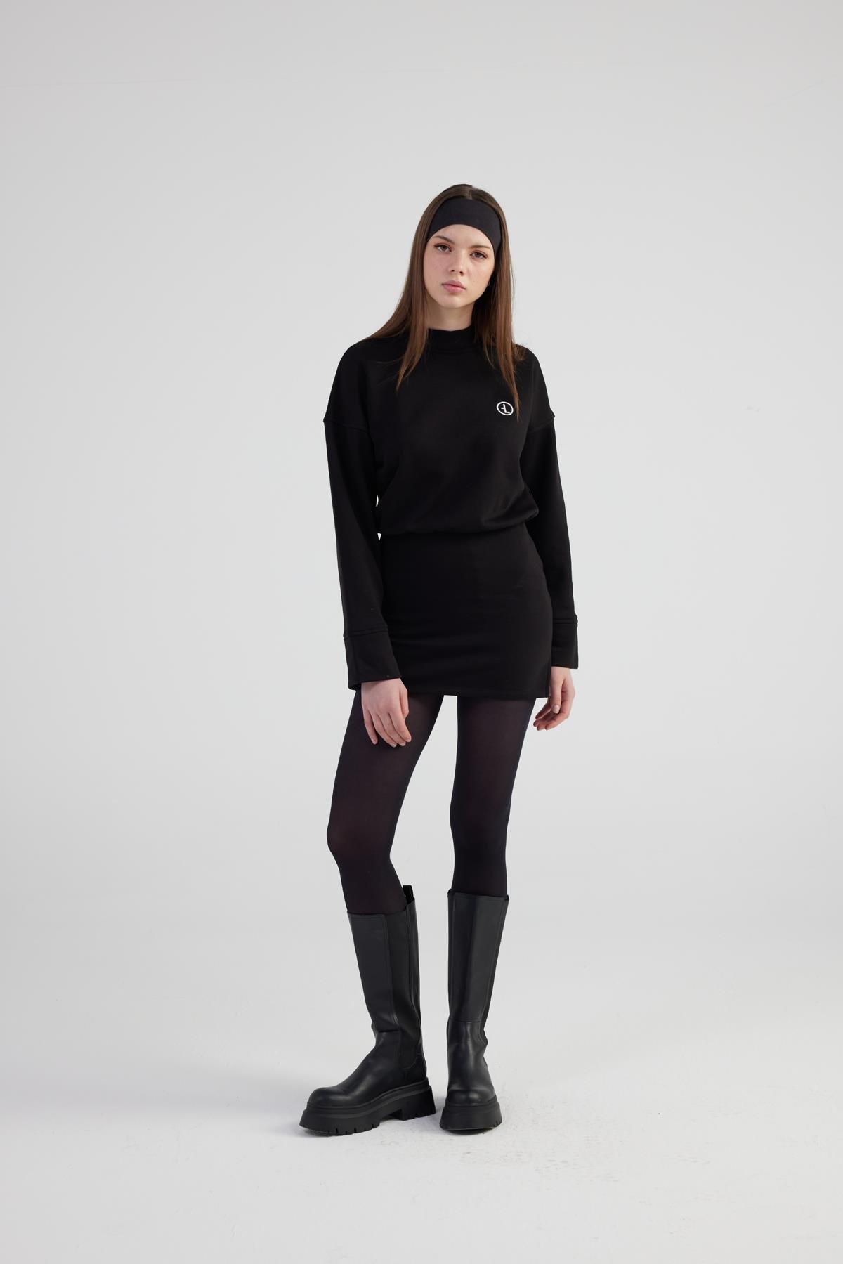 Yırtmaçlı Dokuma Kumaş Mini Claire Elbise Siyah