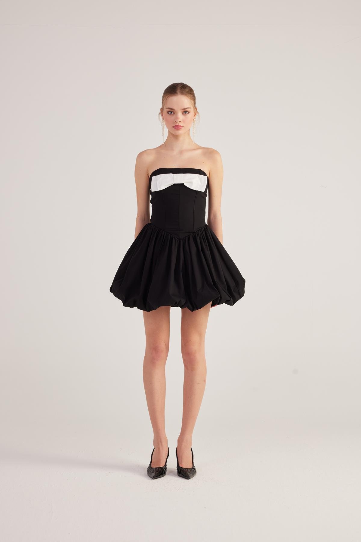 Çıkarılabilir Kurdela Aksesuarlı Balon Etekli Mini Elbise